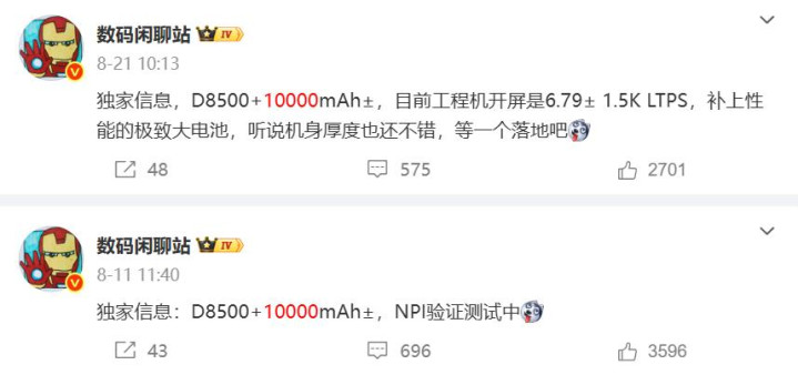 早之前博主数码闲聊站就爆料,荣耀会有一款10000mAh大电池手机将在明年上市,目前综合配置也很明确,搭载天玑8500处理器+LPDDR5X+UFS4.0,内置10000mAh电池+80w有线充电+反向充电。